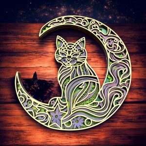 Cat and Moon Multilayer Wood Wall Art, Multilayer Wooden Wall Decor, Layered Wall Art, Modern Home Decor, Cat Lovers Gift