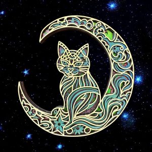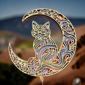 Cat and Moon Multilayer Wood Wall Art, Multilayer Wooden Wall Decor, Layered Wall Art, Modern Home Decor, Cat Lovers Gift